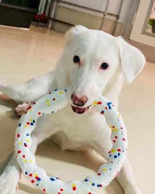 | 性格・特徴 | ビビりちゃんなので、人馴れ訓練中ですが、元気で他のわんちゃんともよく遊びます。とっても積極的です。 これからお散歩、人との暮らし、おトイレトレーニング、クレートトレーニングなど沢山学ばされる必要があります。 |